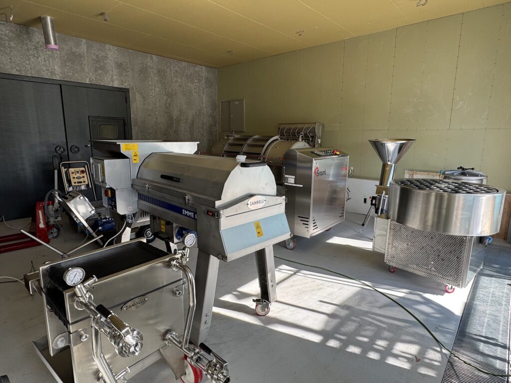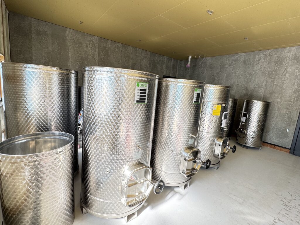 まだピカピカなタンクや設備ですが、今年の秋に向けて試運転などをし、いよいよワイン醸造の準備に入ります。秋には葡萄が入り、ワインの発酵する香りも広がるはず。