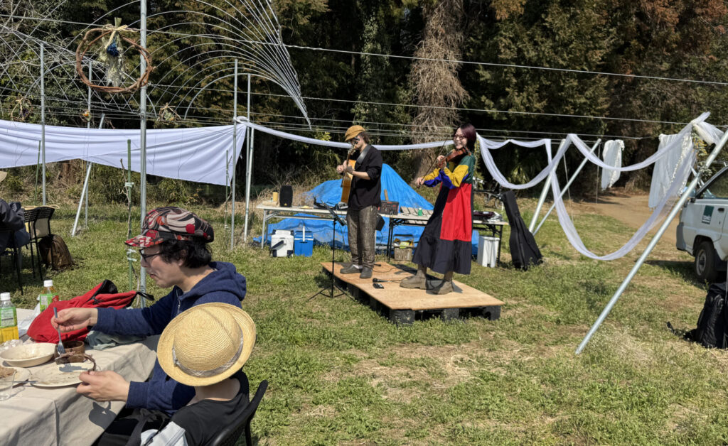 その後は千葉県出身のアーティスト「mille baisers(ミルベゼ)」の演奏と、木更津のKURKKU FIELDS (クルックフィールズ)さんの千葉県食材を使ったランチ会を開催。千葉ワイナリーの未来を作る楽しいひとときとなりました。苗木の様子などは今後のワイナリー通信で随時お知らせして参ります。